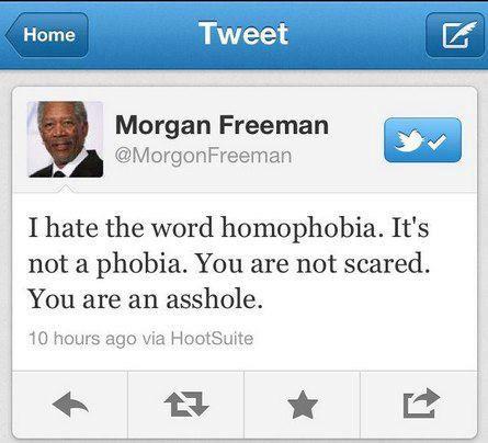 Morgan Freeman probably would not impressed by the deep tradition of anti-homosexual thought in Western culture.  Anyone who starts by dismissing all those with whom he disagrees as simple assholes does not likely desire a more profound understanding of his opponents.
