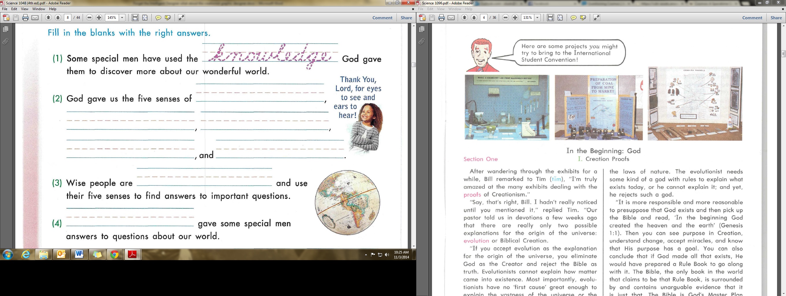 You learn that God created.