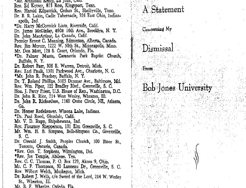Neither my wife (who is also an alum) nor I have never financially supported Bryan College beyond one small gift to a regional scholarship fund some years ago. We both have felt for years (even during our time as students) that the current administration of the school was untrustworthy, and have had no confidence that any gifts would be spent wisely. We have also counseled friends away from sending their children to Bryan (in spite of some good things still going on there in several departments). We might be inclined to support the school in the future, if changes are made to how it is run. Time will tell.