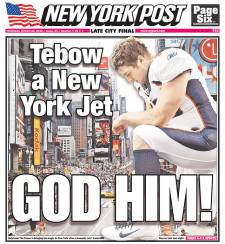 move to the New York Jets brought a new round of media focus on Tebow’s style of loud public Christian-ness.